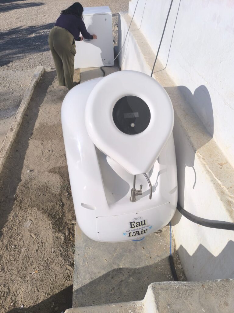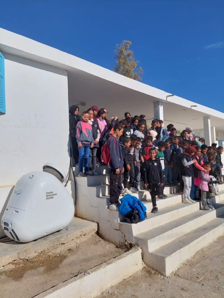 In this school, the learning conditions are very difficult. Adding to this, the students travel kilometers each day to get to school, an average of 4-5 kilometers on foot. They arrive tired and dehydrated, as drinking water is not available at the school and connecting it to the state network is difficult. They have also recorded a high dropout rate, especially among girls. They had the idea of equipping the school with a solution that combines innovation, climate resilience, and education: KUMULUS Water Machines, a machine that produces water from the air.